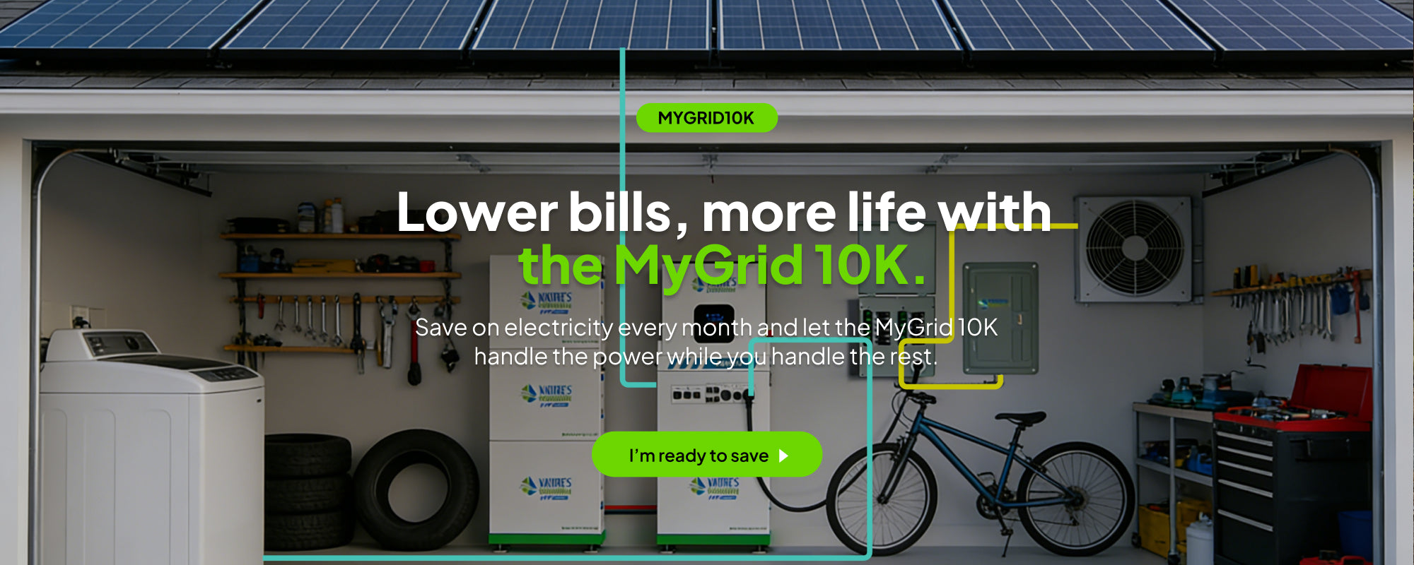 The Nature’s Generator MyGrid 10K delivers 10,000W of expandable power through versatile outlets for total off-grid independence.
