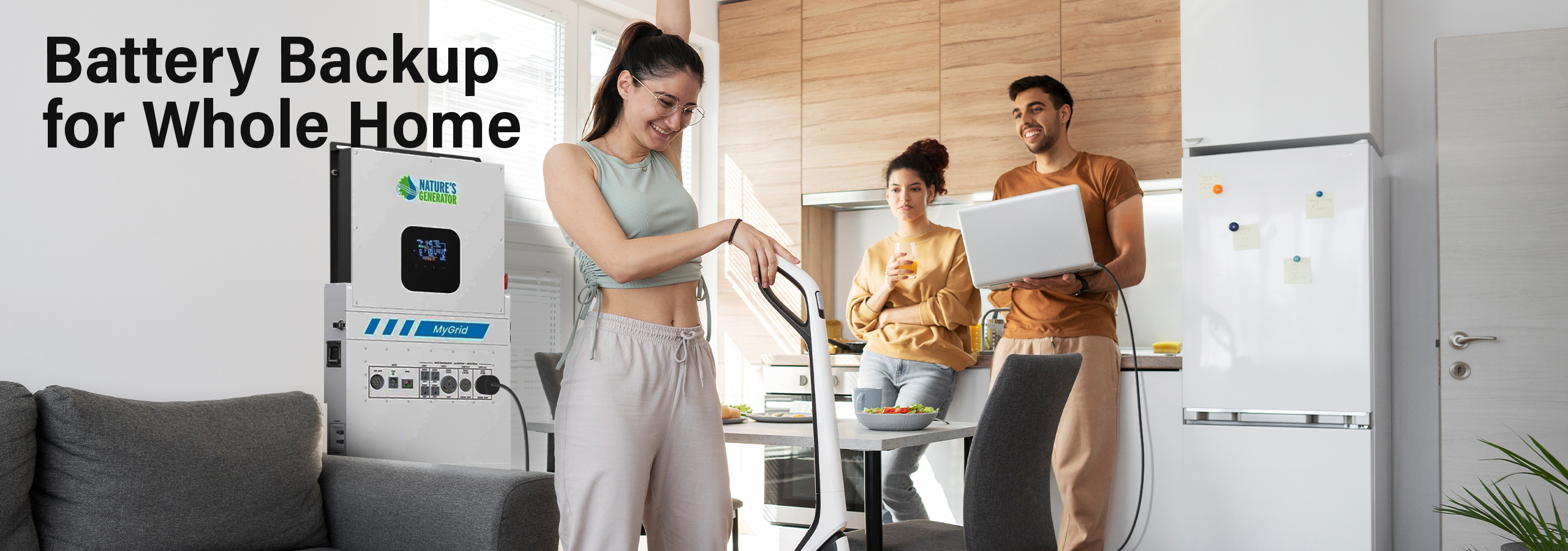 Power what matters most your HVAC system, kitchen appliances, TV and entertainment, and whole-house lighting. The MyGrid 10k delivers reliable whole-home battery backup with advanced LiFePO4 technology built for durability and efficiency, ensuring comfort and convenience for your family during every outage.