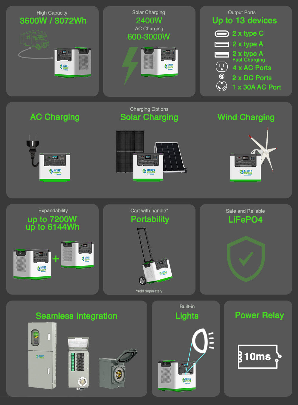 Nature's Generator Lithium 3600 / 6000 Heavy Duty Cart