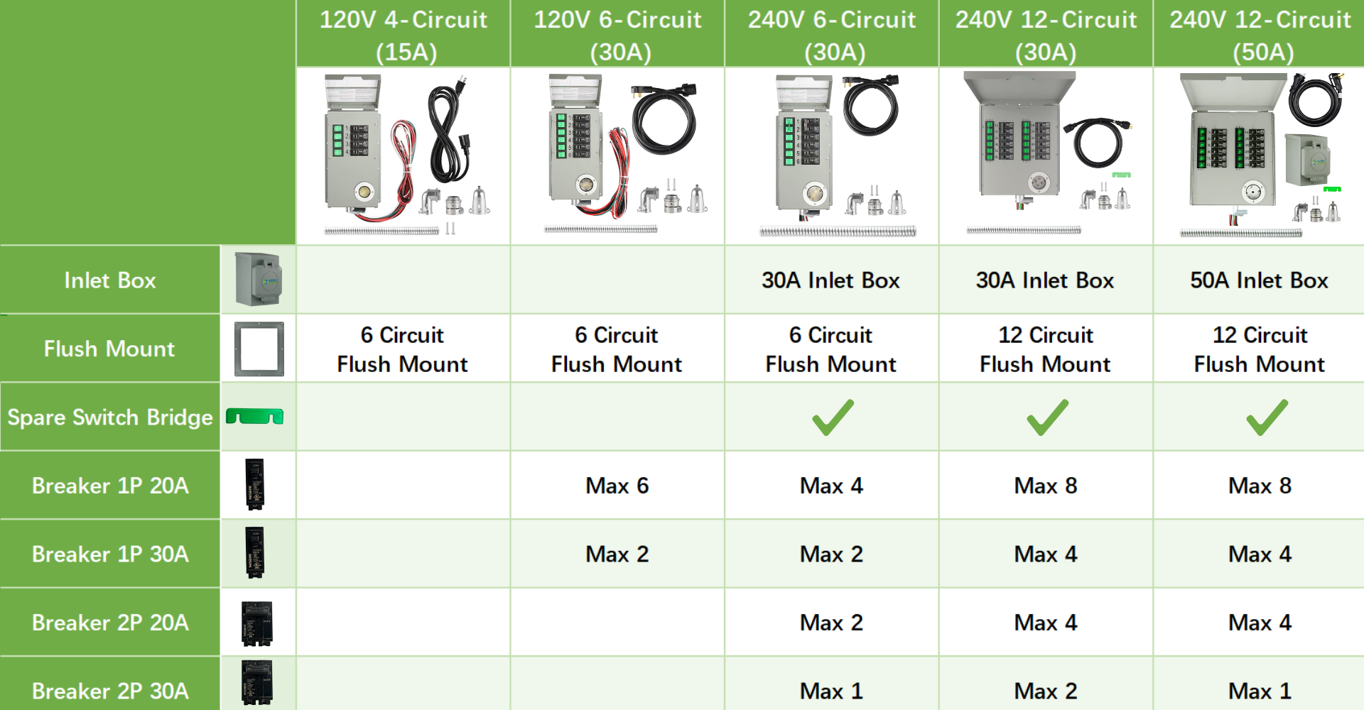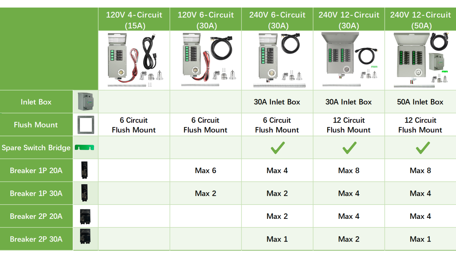 Thank you for reaching out! We only have 6 and 12 circuit breakers for 30 amp and 120v transfer switch. If you have any follow-up questions, you may reach our support directly via (800) 975-7909, or email us at support@naturesgenerator.com. We'll be more than happy to assist you!