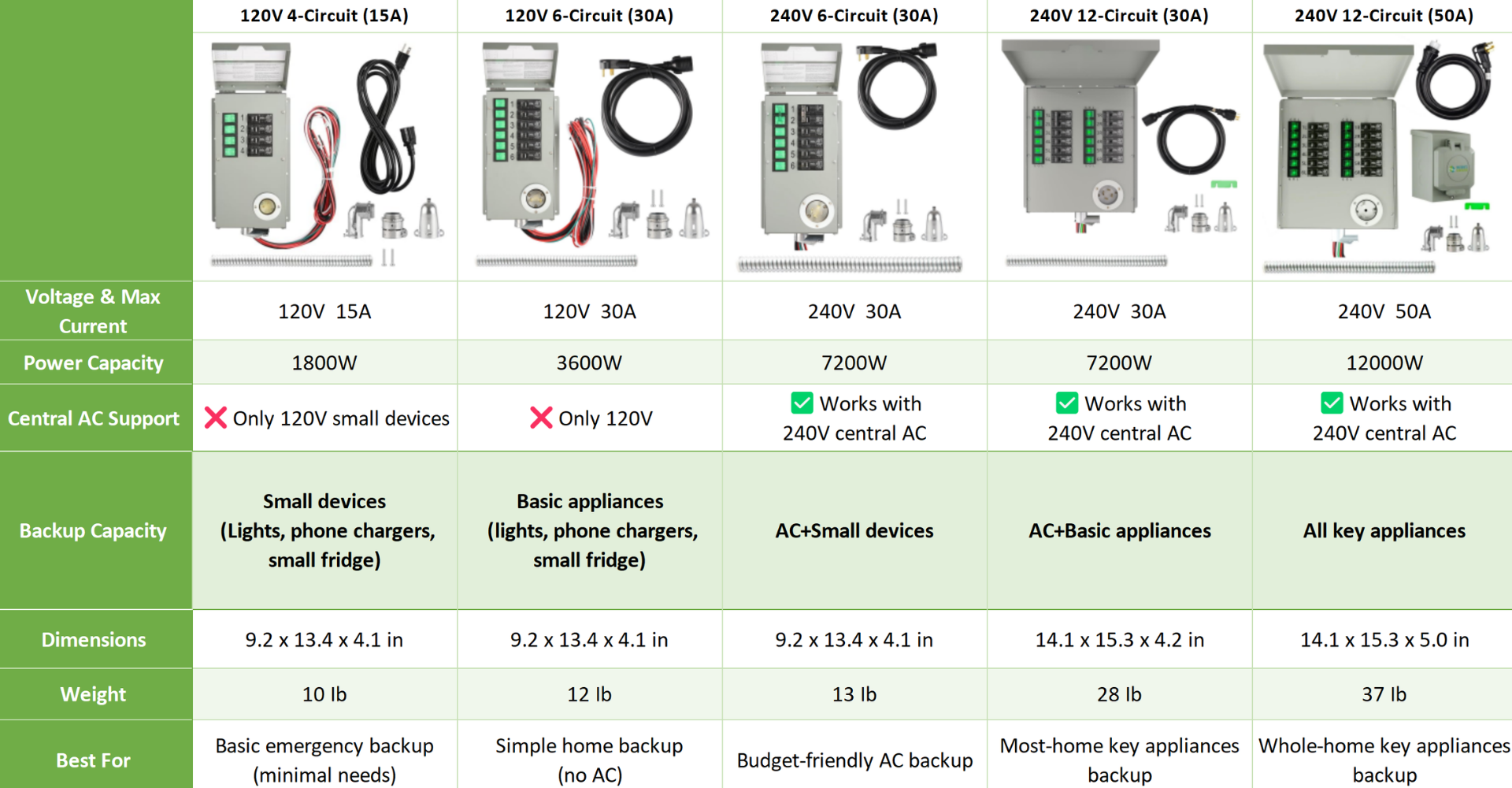 It allows you to power electrical appliances, devices, and lighting during a power outage. This transfer switch is completely codes compliant and keeps the generator power isolated from the utility power at all times. Circuit breakers are 1 in. interchangeable and can be changed to different sizes and brands that are compatible and within the maximum circuit size ratings.